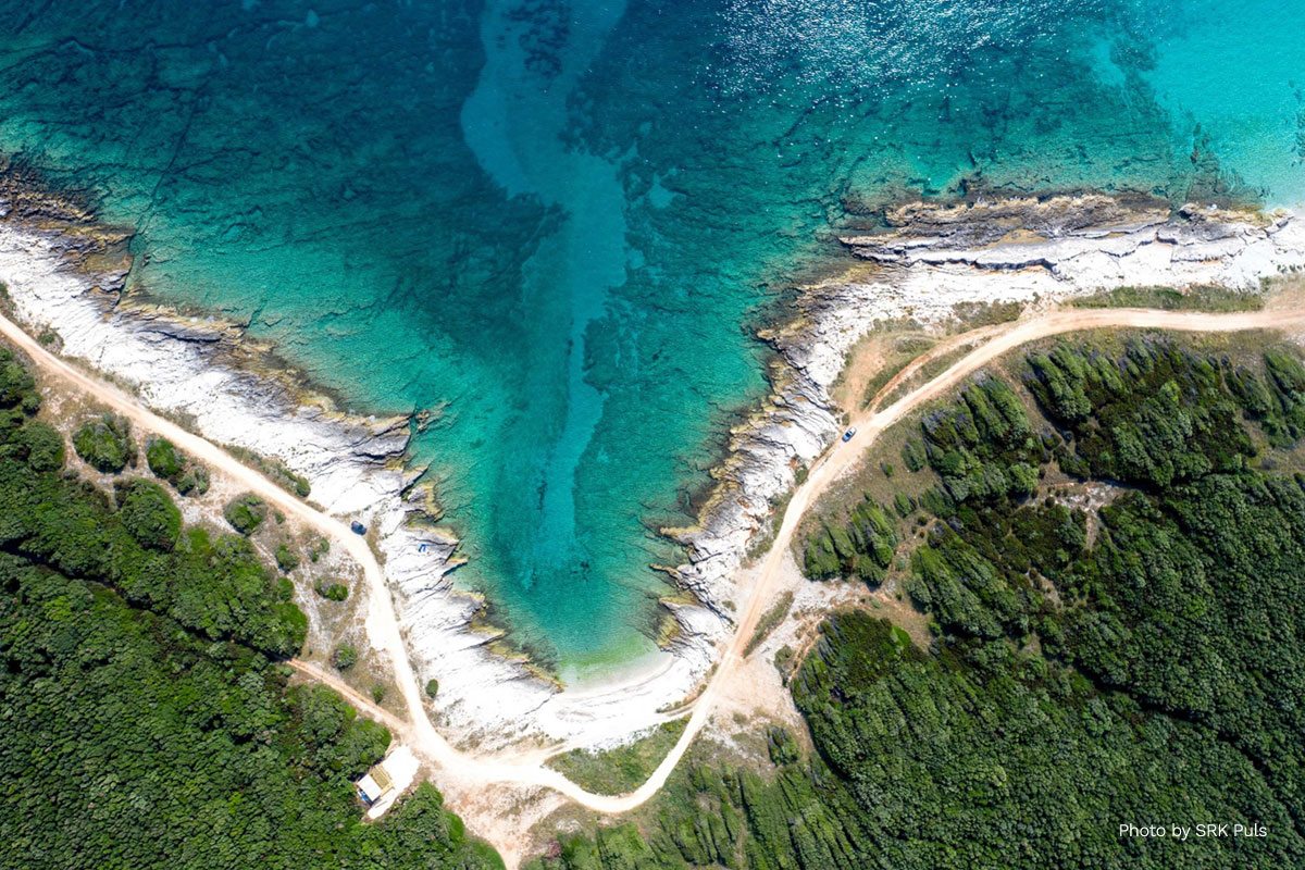 La baia Mala Draga, che puoi raggiungere attraverso la foresta, in auto o via mare in barca.